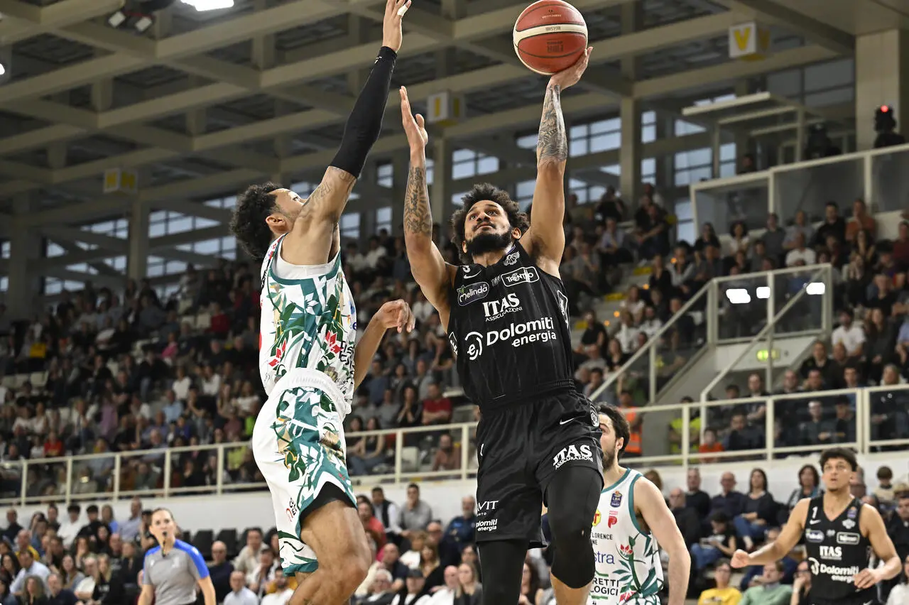 TRENTO – La Dolomiti Energia Trentino cede in casa contro Pistoia 80-105: nel 29° e penultimo turno di regular season in Serie A, i bianconeri già certi di un pass per i playoff Scudetto si arrendono alla “matricola terribile” toscana, che grazie a una serata irreale da 13/20 da tre espugna il palazzetto di Trento, dilagando nel finale dopo un match equilibrato ma sempre condotto da Willis e compagni Dieci vittorie e cinque sconfitte nel bilancio casalingo della Serie A per Forray e compagni, che dovendo sempre fare i conti con le assenze di Grazulis, Udom e Niang non sono riusciti a limitare l’ispiratissimo attacco degli ospiti vedendo anche ribaltato il +4 dell’andata a Pistoia. Per i bianconeri serata da 19 punti a referto per Paul Biligha, 14 a testa per Alviti e Hubb.
