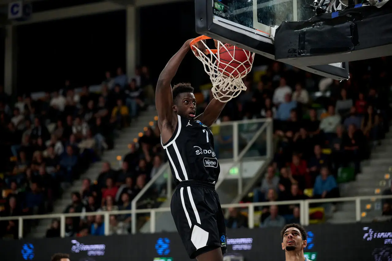 TRENTO – Vince il Turk Telekom Ankara il Round 4 di BKT EuroCup, imponendosi per 60-80 in una partita in cui la Dolomiti Energia Trentino ha lottato fino alla fine, arrivando anche a soli sei punti di distanza a cinque minuti dal termine. Ottimo l’avvio dei bianconeri, spinti dalle giocate di Steward e Jogela, che hanno permesso ai padroni di casa di toccare il +12 nel primo quarto. Ankara però ha reagito, alzando l’intensità offensiva e andando all’intervallo lungo avanti di dieci lunghezze. Nel secondo tempo l’Aquila ha provato con grande determinazione a rientrare, ma nel finale la formazione turca ha preso definitivamente il largo fino al 60-80 finale. Il migliore tra i bianconeri è stato DJ Steward, autore di 11 punti, seguito dagli 8 di Jakimovski, Jogela e Jones. Per il Turk Telekom, l’MVP della sfida è stato Jordan Usher (13 punti, 5 rimbalzi e 3 assist), mentre il top scorer è risultato Michael Devoe con 14 punti.