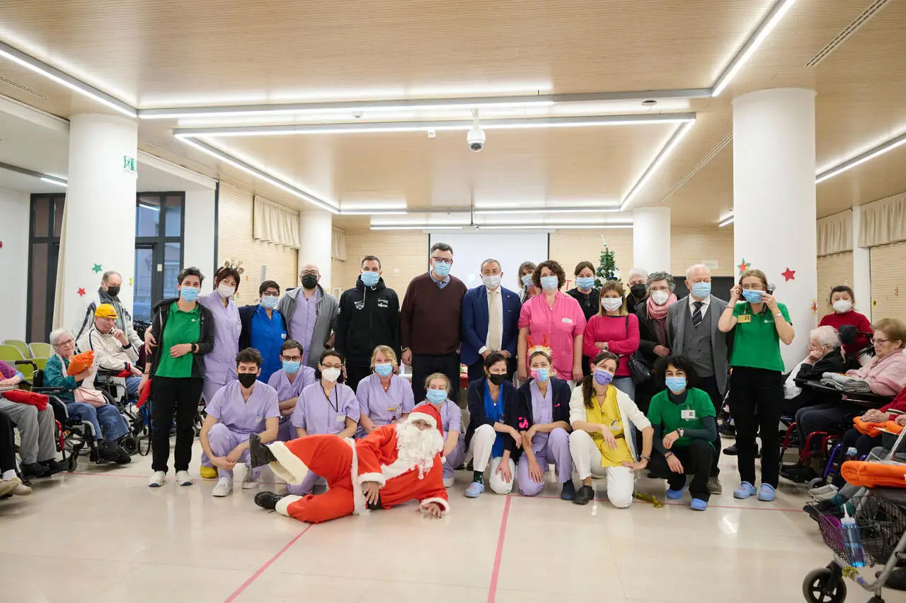 Aquila Basket non significa solo pallacanestro, ma essere parte attiva di una comunità e di un'intera città: ecco perché è stata particolarmente significativa e ricca di emozione la visita "natalizia" del Presidente Luigi Longhi e dell'allenatore di Aquila Basket Trento coach Paolo Galbiati al momento conviviale della casa di riposo "Beato De Tschiderer" di via Piave a Trento. L'occasione per portare un po' di gioia (e qualche regalo di Natale!) alla consueta festa della struttura, con gli auguri a operatori e i residenti.