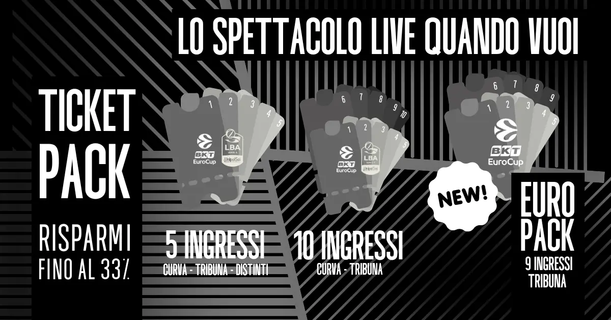 Tornano i Ticket Pack, il modo più flessibile per vivere le partite casalinghe della Dolomiti Energia Trentino! Per questa stagione c'è una novità: l'EuroPack, che comprende 9 ingressi alle partite di EuroCup a soli 99€.