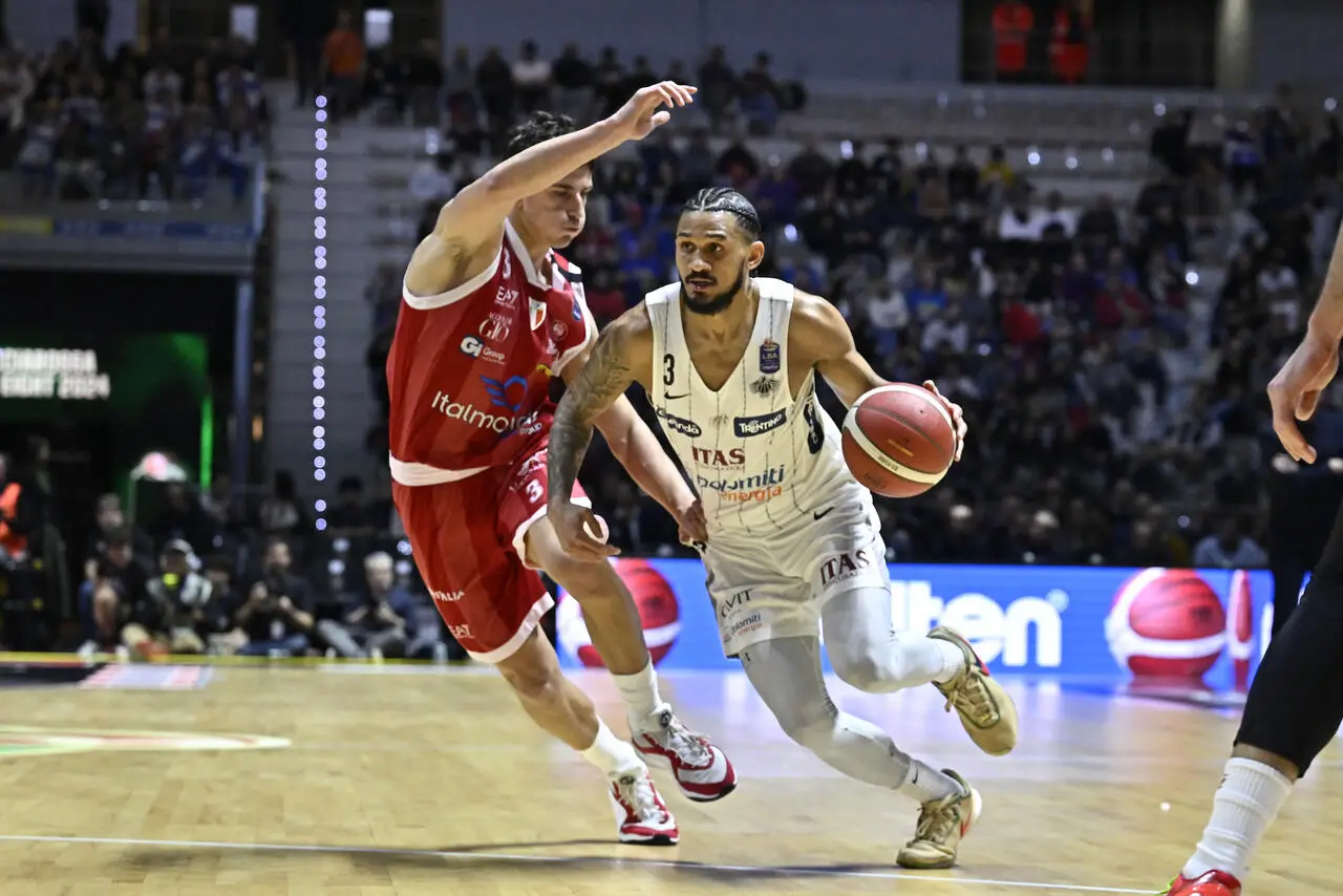 Dolomiti Energia Trentino: Hubb 12, Alviti 9, Niang 4, Conti, Forray 9, Cooke Jr. 4, Udom, Biligha 5, Grazulis 5, Mooney 3, Baldwin 6. Coach Galbiati.