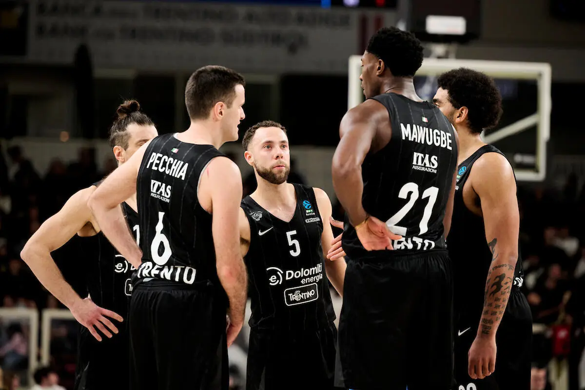 TRENTO – La Dolomiti Energia Trentino davanti ai 3.197 de “Il T Quotidiano Arena” sfiora una rimonta importante contro il Bahçeşehir, ma il finale premia i turchi, che si impongono 69-73. I bianconeri hanno dovuto fare i conti con numerose assenze: Zukauskas, ancora in fase di recupero dal problema alla schiena, non è sceso in campo, mentre Ellis, fermato da una distorsione alla caviglia, dovrà restare lontano dal parquet per tre settimane. Trento parte male, subendo il gioco degli ospiti che volano fino al +16. Con grande carattere, però, i bianconeri reagiscono e, a cinque minuti dalla fine, riescono addirittura a portarsi avanti di 7 punti. Nel finale, tuttavia, le energie si esauriscono, e il Bahçeşehir ne approfitta per chiudere la gara e consolidare la leadership nel gruppo A. Non bastano i 19 punti di Jordan Ford e i 15 di Lamb per superare i turchi, trascinati da Tai Odiase e Jaleen Smith, entrambi autori di 15 punti.