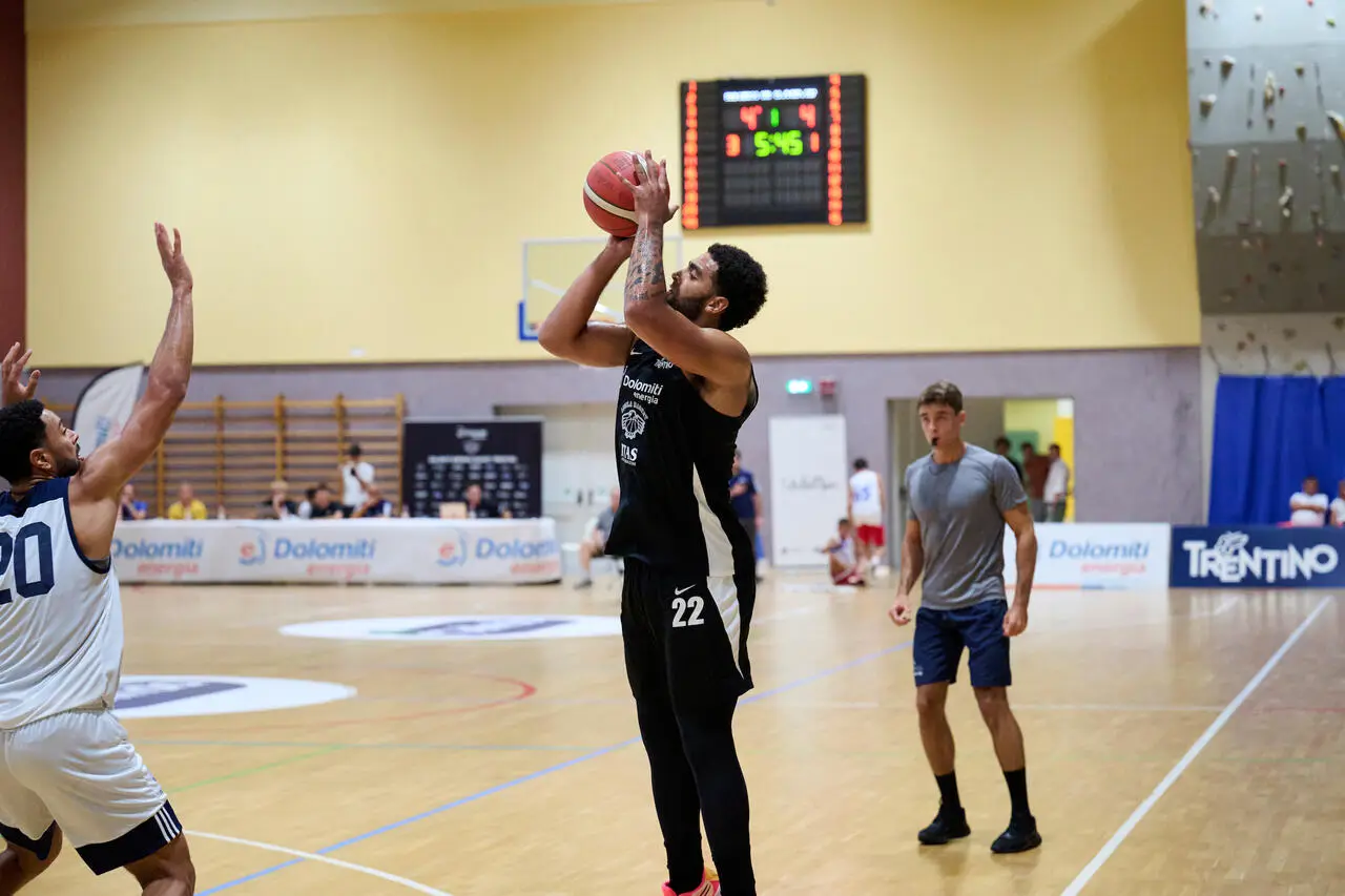 LA CRONACA – Coach Galbiati che in questa occasione deve fare a meno di Zukauskas, Badalau, Niang e Hassan a causa dei classici acciacchi di inizio stagione manda in campo: Ellis, Ford, Cale, Lamb e Mawugbe. Il primo canestro della stagione lo segna Anthony Lamb la tripla che porta in vantaggio i bianconeri. Dopo un inizio offensivo un po' complicato la Dolomiti Energia Trentino inizia a correre in transizione sbloccandosi con l’alley-opp di Mawugbe, i punti di Cale e la tripla di Forray. I canestri sul finale di Airhienbuwa e Bartoli permettono alla formazione scaligera di portarsi in vantaggio allo scadere del 10’ sul punteggio di 19-20. Riprende il gioco meglio Trento con le triple di Lamb e Ford portando i bianconeri sul 27-23 costringendo coach Ramagli al timeout. Ellis decolla sopra al ferro ma Udom risponde dall’arco mantenendo la partita in equilibrio. Pecchia e Mawugbe provano a scappare e l’Aquila tocca il massimo vantaggio sul +9. I canestri di Forray e di Ellis chiudo il primo tempo sul punteggio di 44-32.