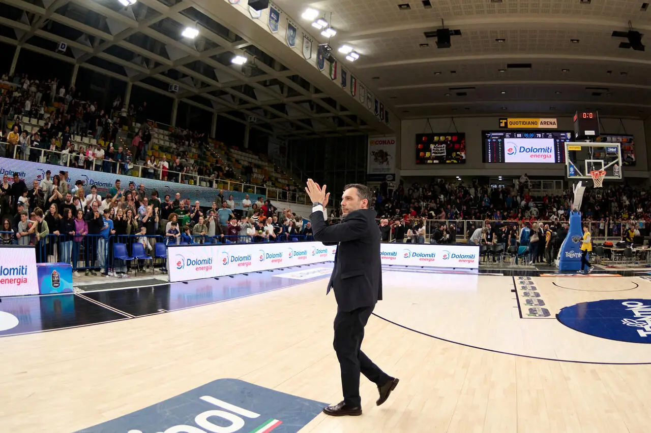 ANDREA NARDELLI (Direttore Generale DOLOMITI ENERGIA TRENTINO): «Siamo qui per riportare l’attenzione su ciò che conta davvero: questo finale di stagione, le ultime due gare di regular season e i playoff. Al termine di questa annata, Paolo Galbiati lascerà la guida della Dolomiti Energia Trentino. La sua scelta è assolutamente legittima e rientra pienamente nella filosofia del nostro club, che da sempre si propone come un trampolino di lancio per chi lavora all’interno dell’organizzazione. Abbiamo deciso di ufficializzare ora una decisione che era già condivisa da tempo, ma che fino a questo momento non sentivamo l’esigenza di comunicare: volevamo e vogliamo che l’attenzione resti solo sul campo e sul percorso straordinario che stiamo compiendo. Ci godremo questo finale di stagione tra amici, professionisti e compagni di viaggio. Ci lasceremo a fine stagione con la consapevolezza e l’orgoglio di aver costruito qualcosa di importante insieme: due anni che resteranno nella storia del club. Siamo felici e grati che Paolo sia stato parte di questo cammino, e ci auguriamo che l’avventura possa proseguire il più a lungo possibile. Dal punto di vista contrattuale, ci teniamo a chiarire un punto: siamo un club che lavora con budget contenuti, puntando sulla crescita dei gruppi di lavoro e sulla valorizzazione dei talenti. Avevamo rinnovato con Paolo proprio perché vedevamo in lui le qualità che cercavamo e volevamo offrirgli la serenità di lavorare senza l’ansia del risultato immediato: anche se avesse perso qualche partita in più, nulla sarebbe cambiato se avesse continuato a portare avanti i valori del club, come la crescita dei giovani e la coesione del gruppo. I contratti lunghi per noi non sono una “prigione”, ma uno strumento per offrire stabilità e fiducia. Ora il nostro unico focus è chiudere al meglio questo percorso, con entusiasmo e determinazione».