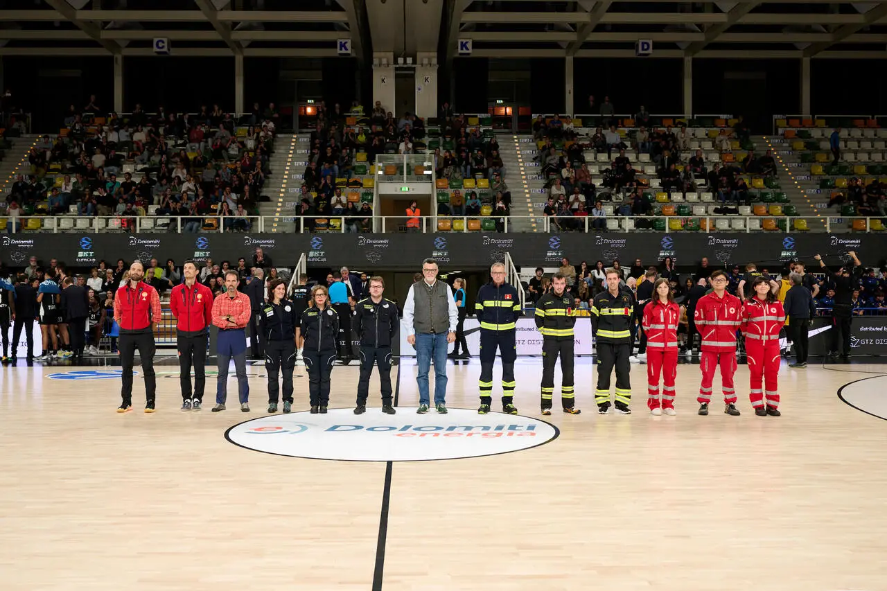 Mercoledì sera, nella prima partita in casa della stagione 2024/25, sono venuti a sostenerci più di 140 volontari fra i cosiddetti "first responder" quali Vigili del Fuoco Volontari, Soccorso Alpino e Speleologico Trentino, Croce Rossa Italiana e Psicologi per i Popoli, appartenenti alla Protezione Civile del Trentino.