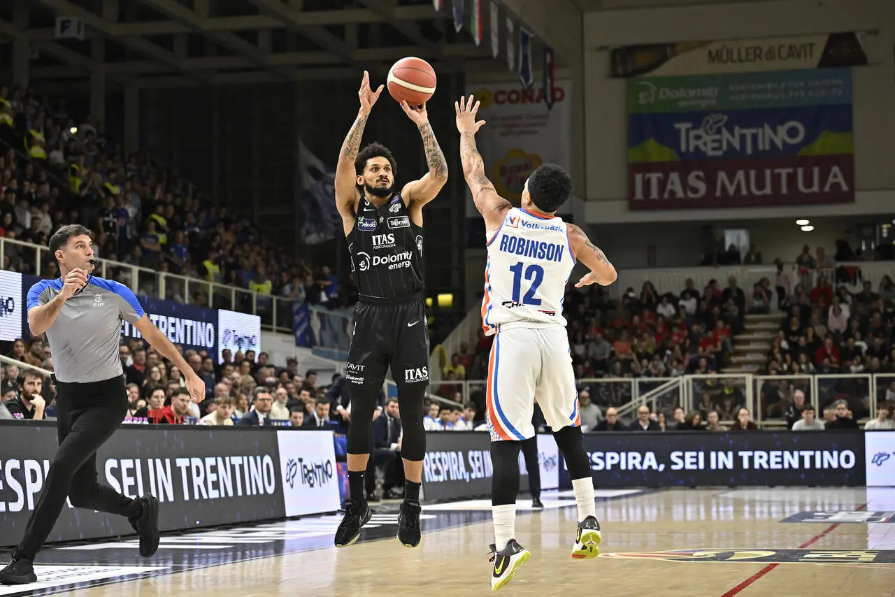 Dolomiti Energia Trentino: Hubb 6, Alviti 8, Niang ne, Conti, Forray 7, Cooke Jr. 2, Diarra ne, Udom, Biligha 10, Grazulis 23, Mooney 8, Baldwin 18. Coach Galbiati.