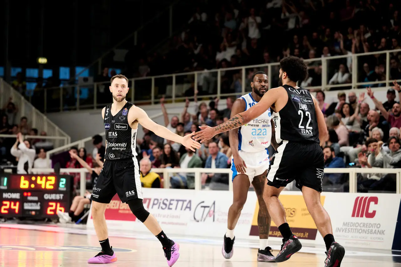Mawugbe apre il secondo tempo con un appoggio da due, seguito da una tripla siderale di Ellis da oltre otto metri. Pecchia riporta avanti Trento, facendo esplodere i 4.000 spettatori della “Il T Quotidiano Arena”, poi Niang inchioda il 46-43, costringendo Poeta al timeout. Ivanovic risponde con un floater dal centro dell’area, mentre Trento fatica in attacco. Brescia ne approfitta: Bilan firma un gioco da tre punti e poco dopo sigla il 46-50, spingendo Galbiati a chiamare timeout. Mawugbe ed Ellis rimettono il punteggio in parità, poi Ford riporta avanti i bianconeri. Il terzo quarto si chiude sul 55-55.