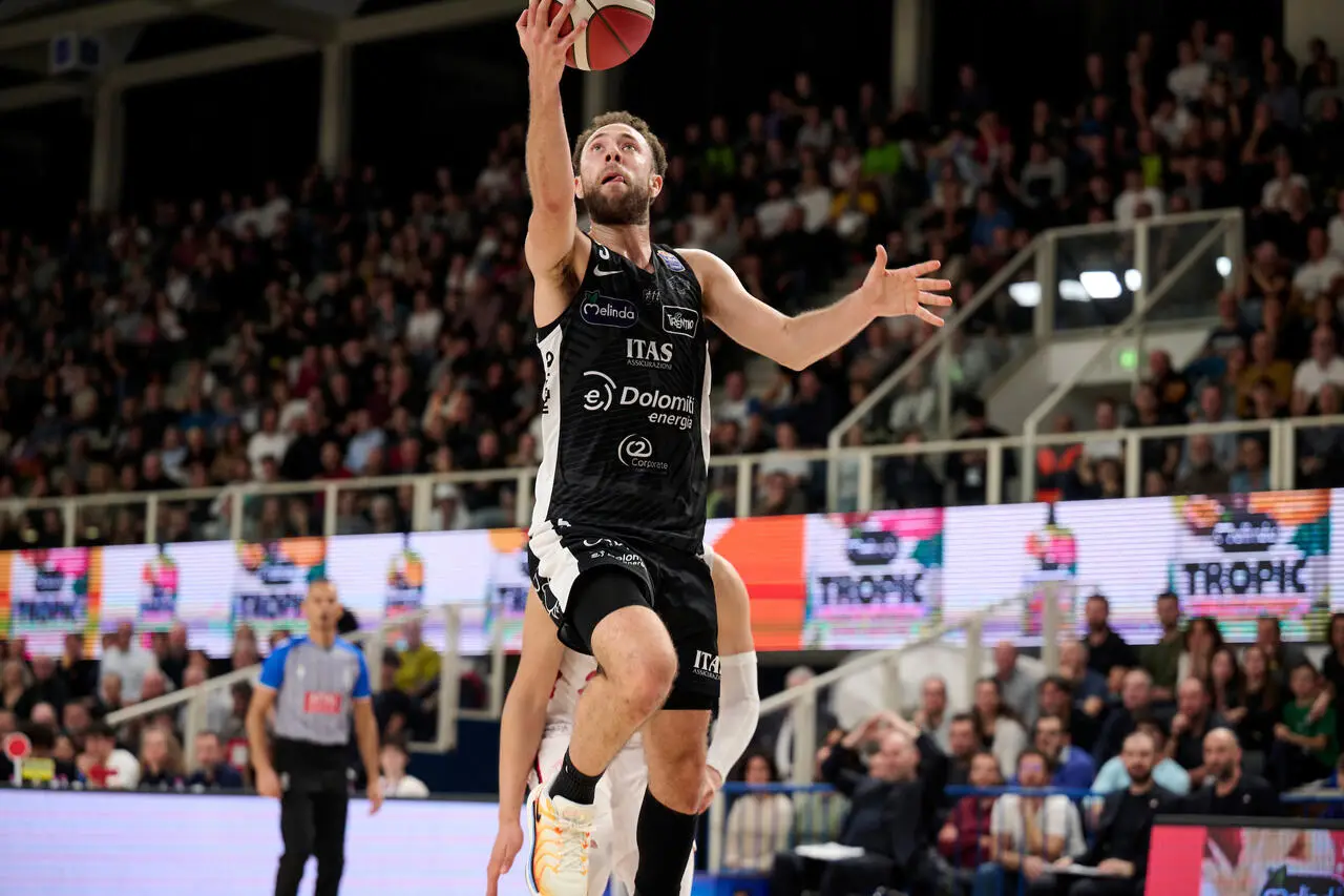 La Pallacanestro Trieste si è confermata fin da subito una neopromossa di lusso, mostrando le proprie ambizioni sin dalla prima giornata di campionato, quando ha battuto l’Olimpia Milano. La squadra allenata da coach Jamion Christian propone un gioco moderno ed efficace, supportata da un roster di altissimo livello. In cabina di regia c’è Colbey Ross, MVP della LBA due stagioni fa, tornato recentemente in campo dopo un infortunio alla mano che lo ha tenuto fuori per due mesi. Ross è un attaccante completo, capace di colpire sia in penetrazione che dall’arco: in stagione viaggia a 15.1 punti di media, con il 46.3% da due, il 37.2% da tre, 4.6 assist e 3 rimbalzi a gara. A condividere il ruolo di playmaker c’è l’italiano Michele Ruzzier, tiratore letale dai 6.75. Nella sfida di Coppa Italia proprio contro Trento, fu protagonista con una prestazione da 25 punti.