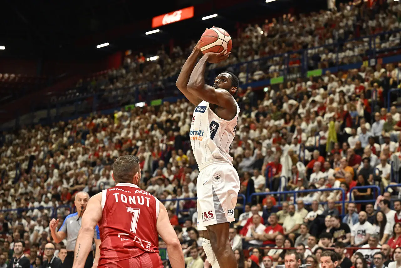La cronaca del match. Grazie a tre triple in rapida successione i bianconeri si portano avanti in apertura di partita (9-11 con i centri di Forray, Mooney e Baldwin). Milano risponde con la stessa moneta mostrando tutto il talento di Napier e Mirotic, ma Trento tiene botta con Biligha protagonista (15-15). Sono le iniziative di Shields e un’altra tripla di Napier a rompere l’equilibrio: l’Aquila ha due grandi schiacciate di Cooke Jr ma Baron e Hines firmano i punti del 32-21 dopo i primi 10’ di gioco. La Dolomiti Energia però non si lascia impressionare e anzi, risponde a tono: Hubb aziona l’attacco bianconero che trova in uno strepitoso Cooke Jr il suo punto di riferimento offensivo in area. Al resto pensano le folate a tutto campo di Ellis e la sostanza di un Alviti incisivo anche in difesa al cospetto di Mirotic: Forray firma un paio di canestri dei suoi, Quinn dalla lunetta riporta i suoi in vantaggio prima dei liberi di Hall che portano le squadre all’intervallo lungo sul 43 pari. Si gioca sui binari dell’equilibrio: Biligha colpisce dall’arco, Alviti e Baldwin rimediano a un paio di palle perse banali con dei grandi canestri. Forray segna la tripla del 55-56, poi è Kamar-show: il numero 44 sale a quota 13 punti personali con i canestri che spingono gli ospiti al 64-69 che recita il tabellone del Forum a fine terzo quarto. E gli ultimi 10’ sono di rara intensità agonistica: Hommes segna una tripla pazzesca per il 73-78, la difesa di Milano si alza di tono ma Cooke Jr segna altri 5 punti per portare avanti i suoi entrando nell’ultimo minuto. A quel punto tocca a Shields e Baldwin, e Kamar segna il canestro della vittoria che gela il Forum.