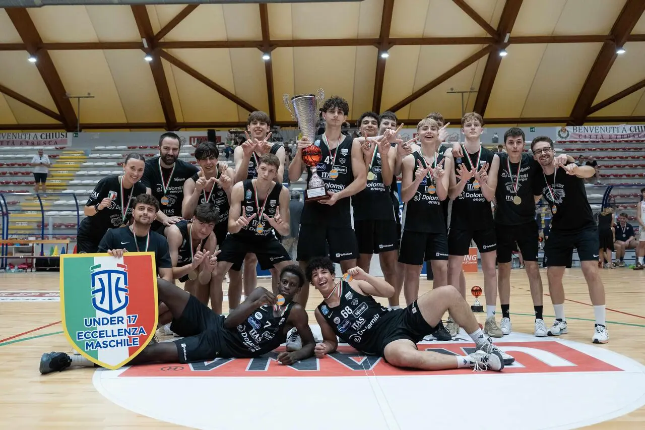 CHIUSI – CAMPIONI D’ITALIA UNDER 17! Una stagione straordinaria per il settore giovanile della Dolomiti Energia Trentino si chiude nel modo più prestigioso: con la conquista del titolo di Campioni d’Italia Under 17, superando Cantù per 80-69 nella finalissima. Dopo il secondo posto ottenuto alle Finali Nazionali Under 19 di Roma, i giovani bianconeri si laureano campioni nella categoria U17 al termine di un percorso esaltante.