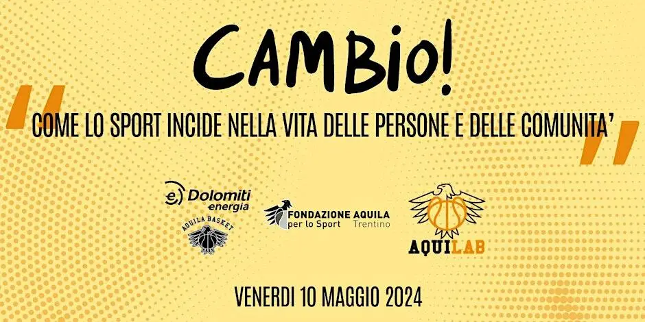 TRENTO - Lo sport può incidere nella vita delle persone in diversi modi: singole persone possono trovare nello sport occasione di crescita, di realizzazione, di sviluppo personale; in piccole comunità lo sport può insegnare il valore di “essere squadra”, di sacrificarsi l’uno per l’altro; in territori più ampi lo sport può essere uno strumento educativo per trasmettere importanti valori alle nuove generazioni. In sintesi, lo sport può essere un potentissimo motore di cambiamento. E proprio di questo si parlerà nell’annuale workshop di AquiLab dal titolo “Cambio! Come lo sport incide nella vita delle persone e delle comunità”, giunto alla sua quarta edizione, che si terrà presso l’Itas Forum in via Adalberto Libera venerdì 10 maggio alle ore 18.30.