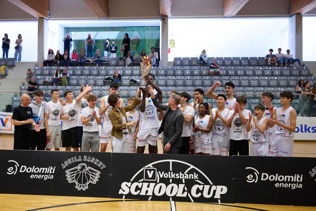 TRENTO – Alla palestra di Sanbàpolis è andata in scena la prima Final Four della Volksbank Aquila Basket School Cup, davanti a tantissimi tifosi e con la diretta streaming su TV33. Le partite saranno in replica su TV33 domenica 17 maggio alle ore 15:00. Le quattro scuole protagoniste – Liceo Scientifico Leonardo Da Vinci, Istituto Arcivescovile, Martino Martini e Ivo De Carneri – si sono affrontate in un clima carico di entusiasmo.