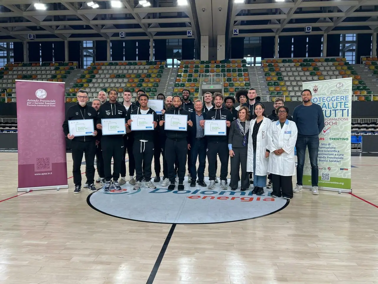 Si rinnova il sostegno di Dolomiti Energia Basket Trentino alle attività di prevenzione e sensibilizzazione di Apss. Anche quest’anno Aquila Basket scende in campo contro l'influenza stagionale, aderendo alla campagna vaccinale. Oggi alla BTS Arena le somministrazioni della vaccinazione antinfluenzale a giocatori, staff tecnico e dirigenziale.