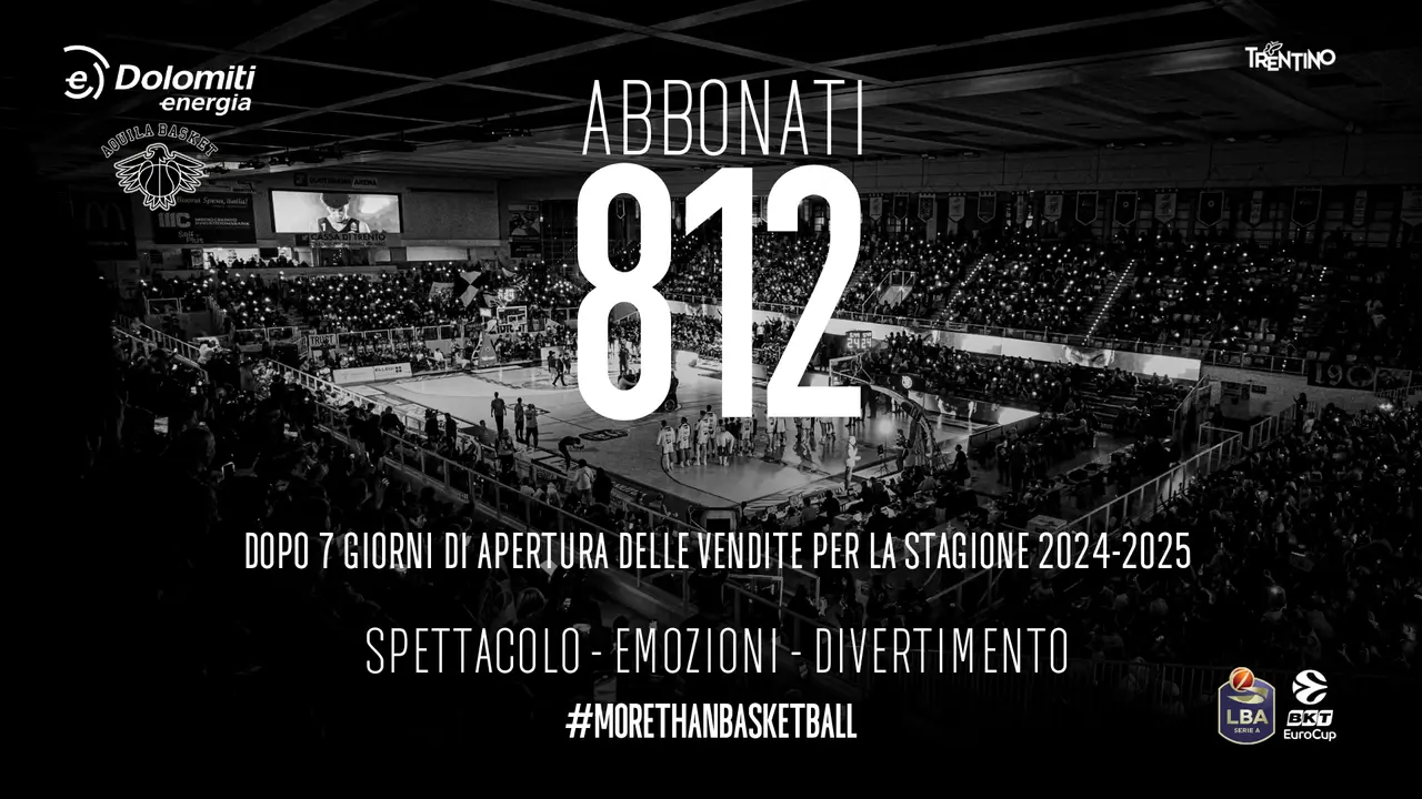 È cominciata alla grande la campagna abbonamenti alla stagione 2024/25 della Dolomiti Energia Trentino. Sono state infatti 812 le tessere sottoscritte nella prima settimana. Questo dato rappresenta una crescita significativa rispetto ai 700 abbonamenti venduti nello stesso periodo dello scorso anno.