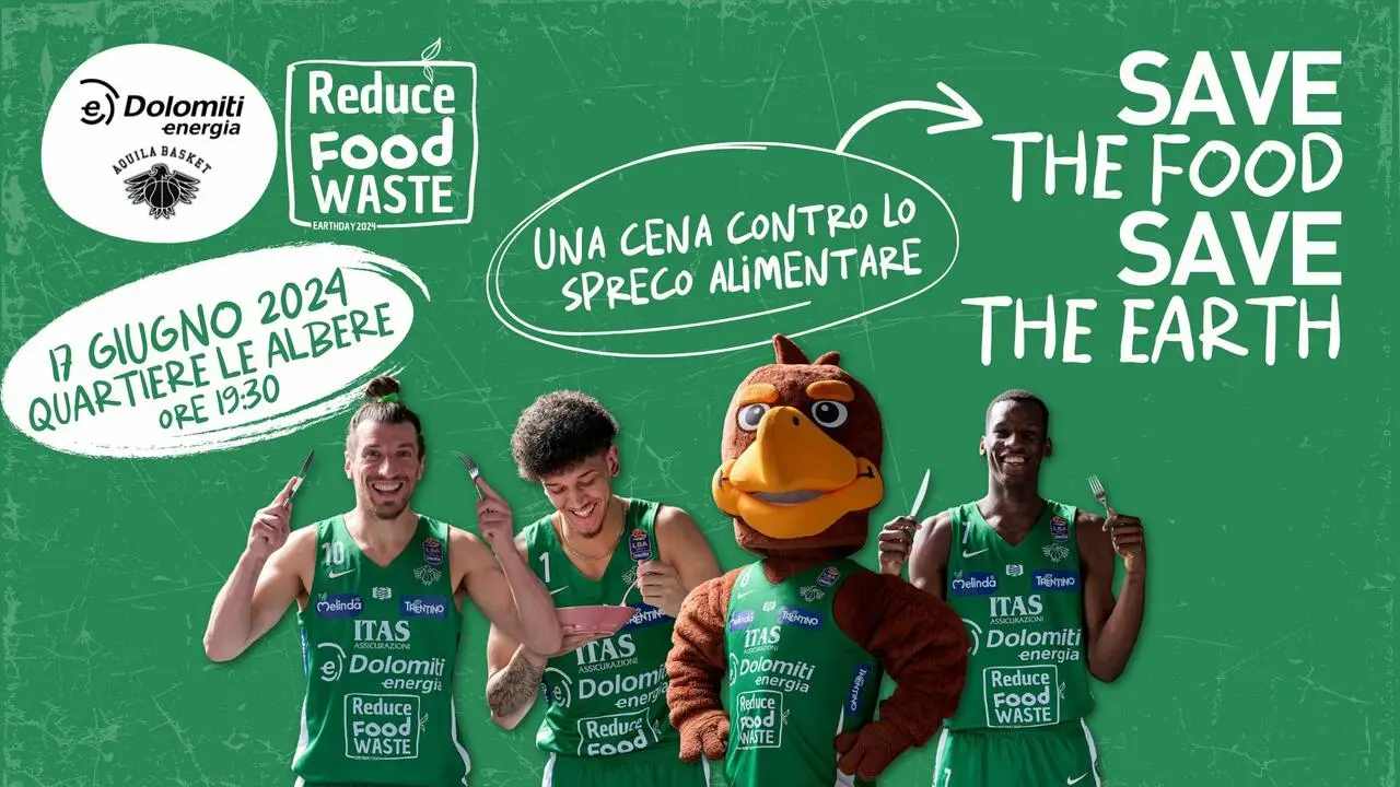 Stand, giochi e approfondimenti interattivi adatti a grandi e piccoli, prima di passare al "piatto principale" della serata: dalle 19.30, sempre all’aperto, si terrà una cena contro lo spreco alimentare, che prevederà un menù sostenibile caratterizzato dall’utilizzo di materie prime del territorio, che rispettano la filiera corta grazie alla fornitura di aziende partner del Club come DAO Conad, Sosi e Trote Astro. Per la cena verrà chiesto ai partecipanti di portare le proprie stoviglie da casa per ridurre al massimo i rifiuti: la cena verrà preparata dalla Cooperativa Villa Sant’Ignazio, dalla Protezione Civile di Trento e dal Centro Trentino di Solidarietà; e verrà servita dalla Protezione Civile con la collaborazione dello staff e dei volontari di Aquila Basket.